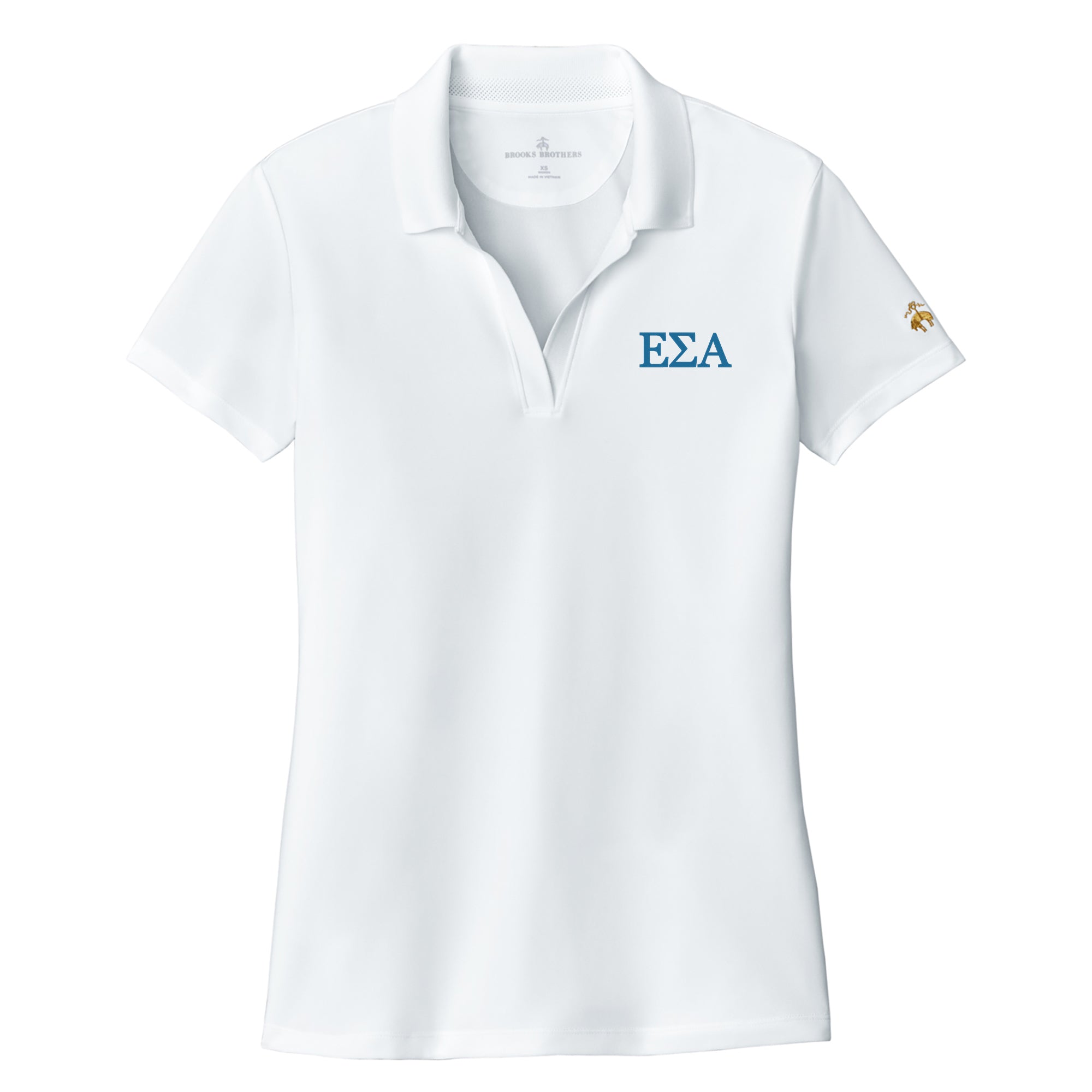Epsilon Sigma Alpha Greek Letter Block LC Women’s Brooks Brothers Mesh Pique Performance Polo - White