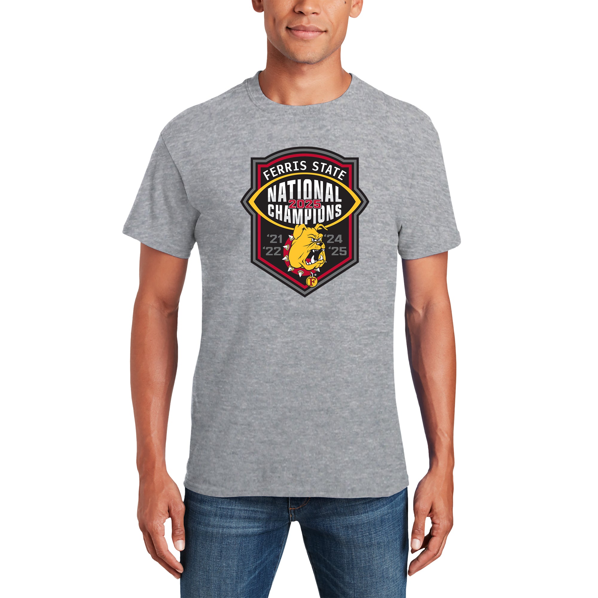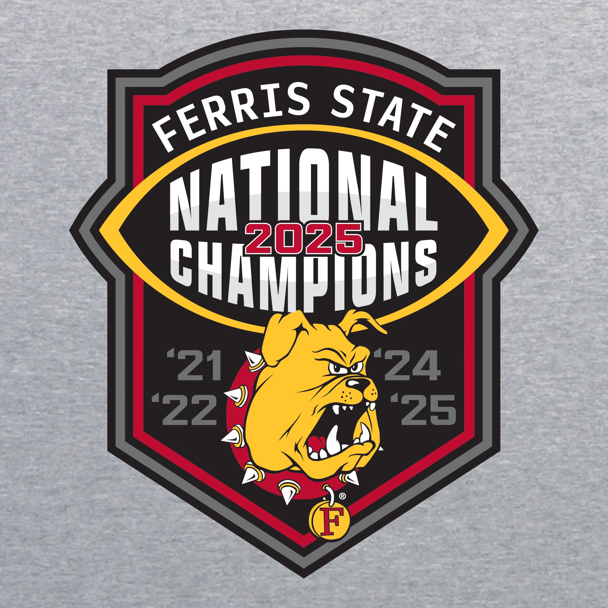 Ferris State 2025 Football National Champions T-Shirt - Sport Grey