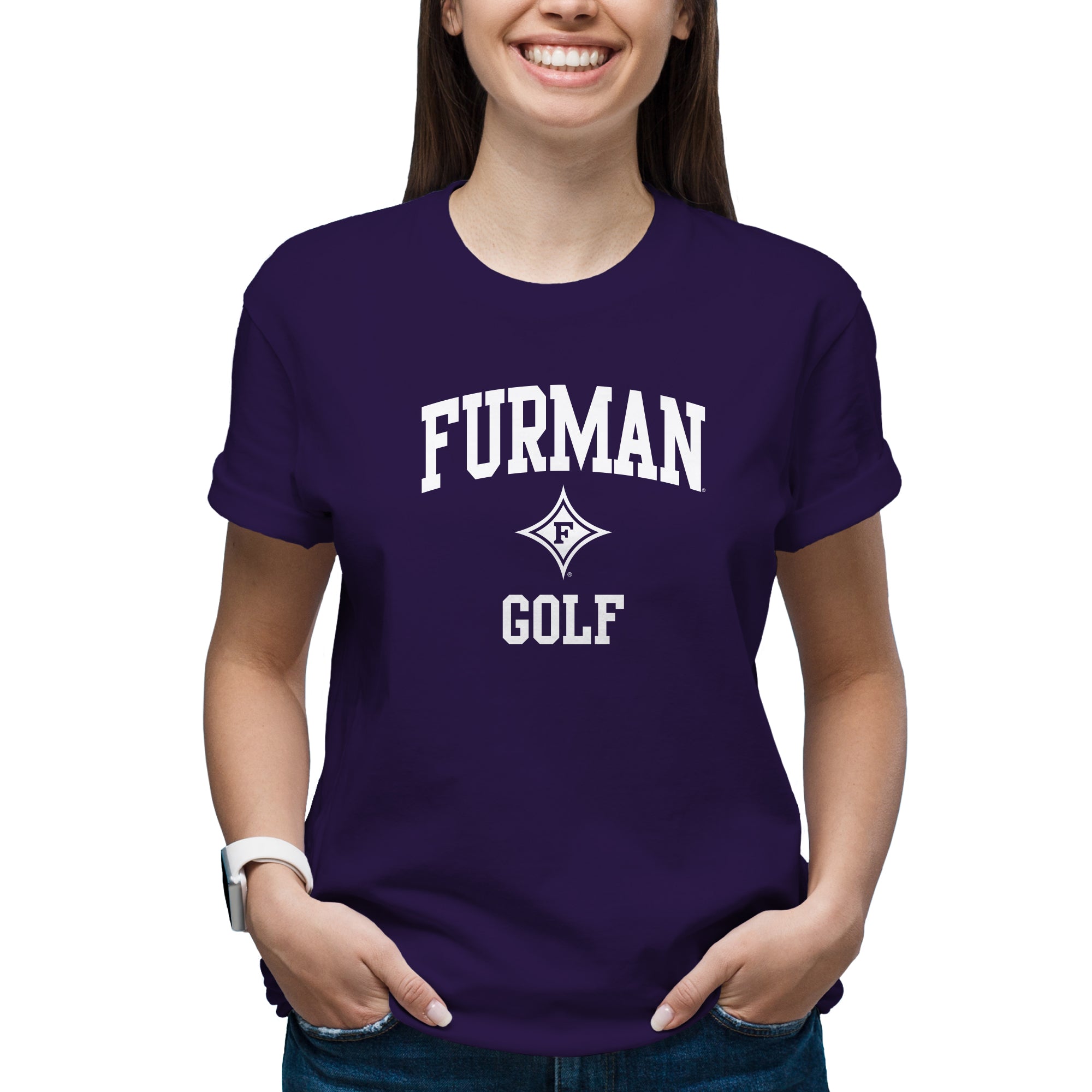 Furman Arch Logo Golf T-Shirt - Purple