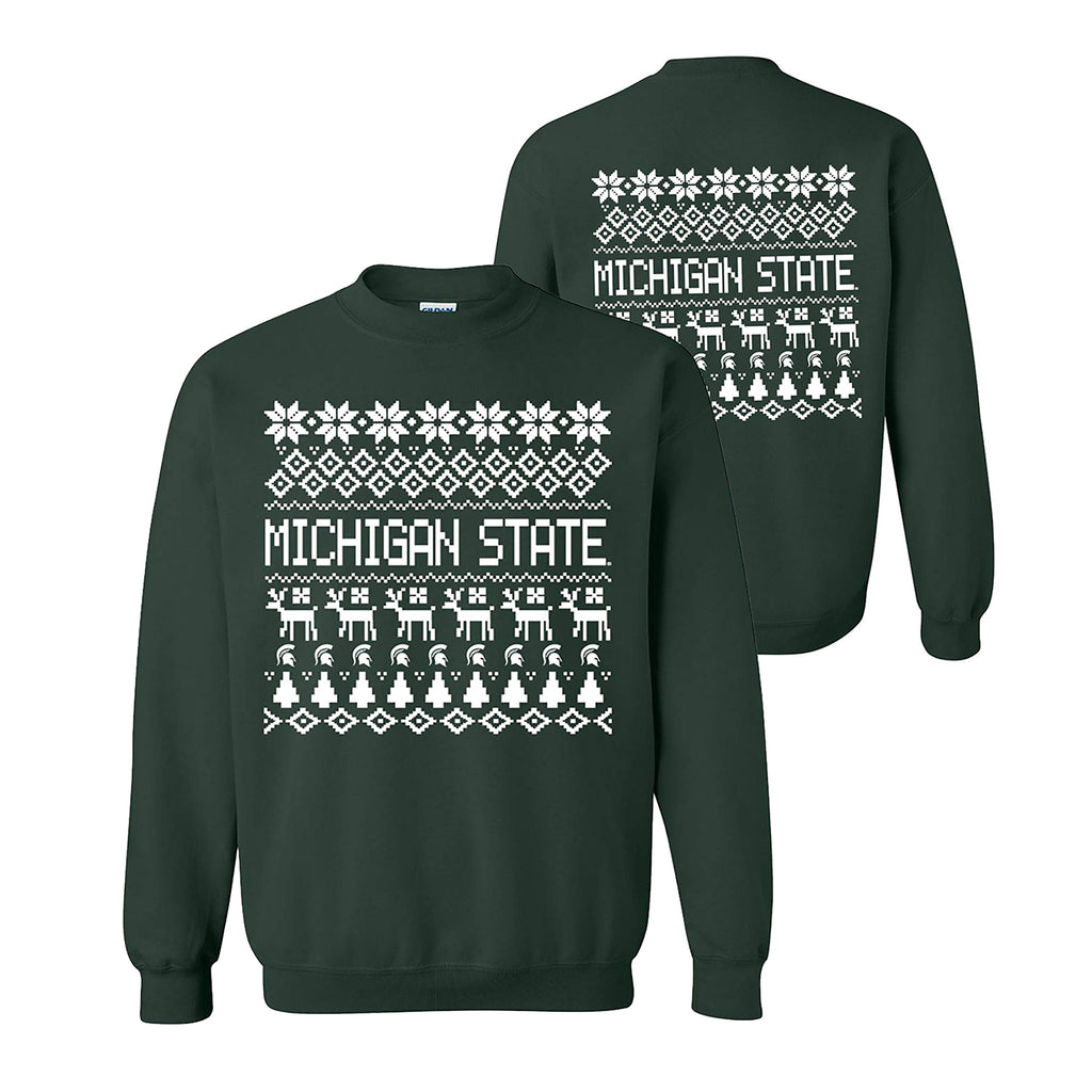 Michigan State University Spartans Holiday Sweater Crewneck Sweatshirt - Forest