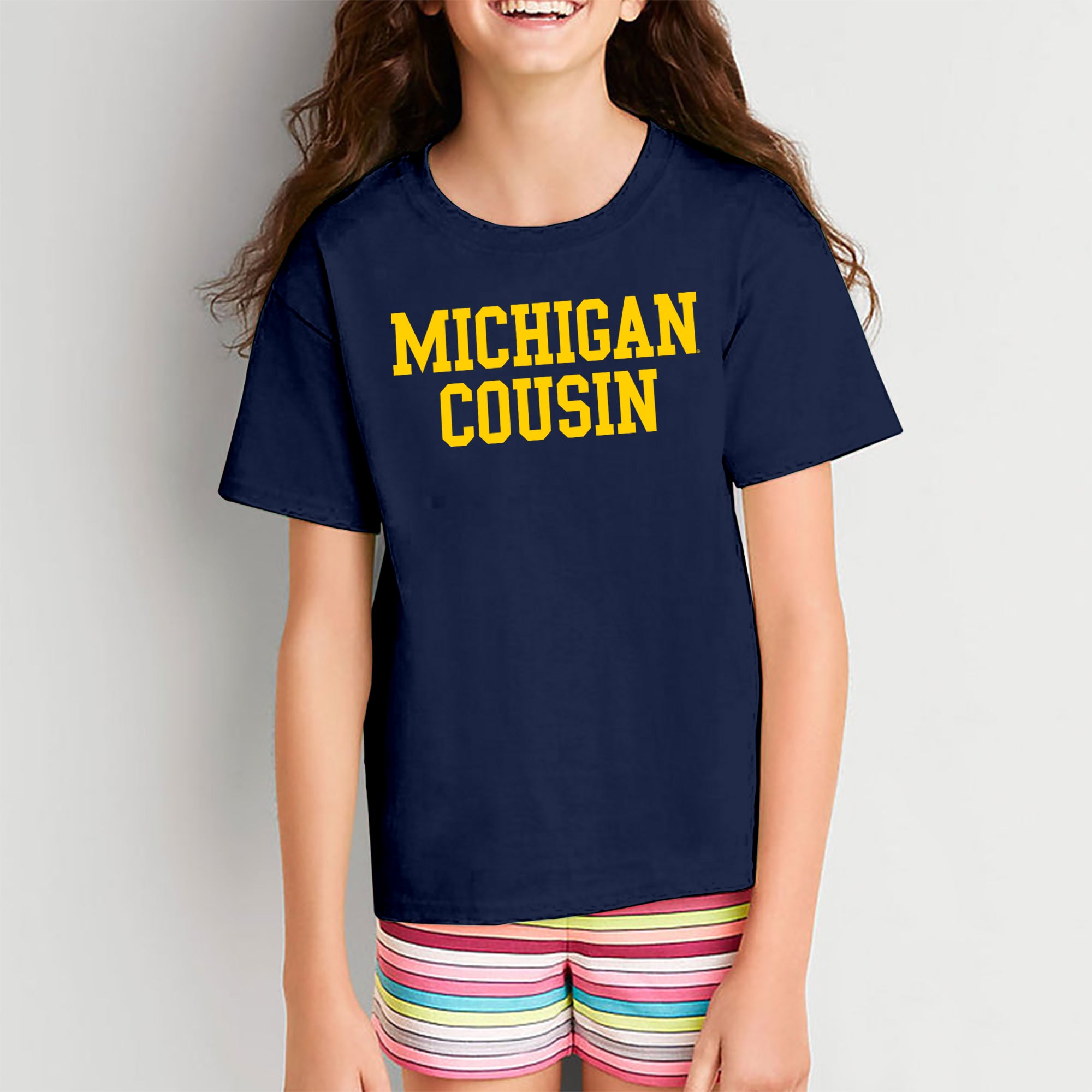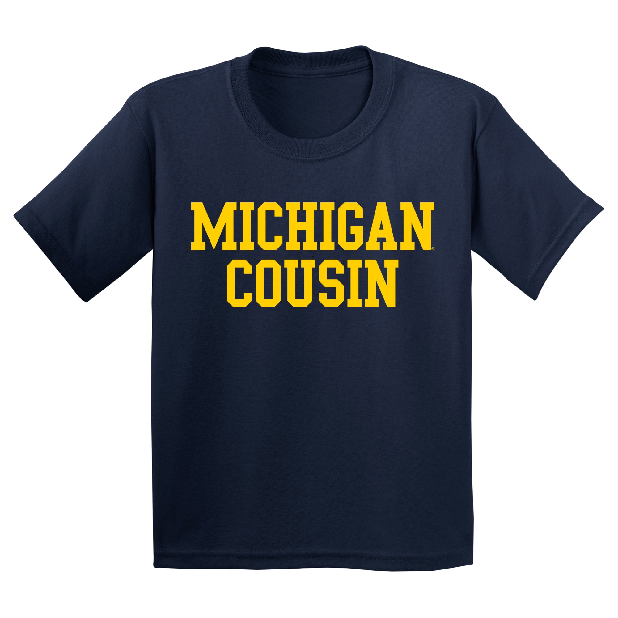 - Be the ultimate Michigan fan with our Michigan Cousin Youth T-Shirt in Navy. Whether you are tailgating at a Michigan football game, or in the stands cheering on the Wolverines Basketball team, show off your Michigan Pride with this great t-shirt.