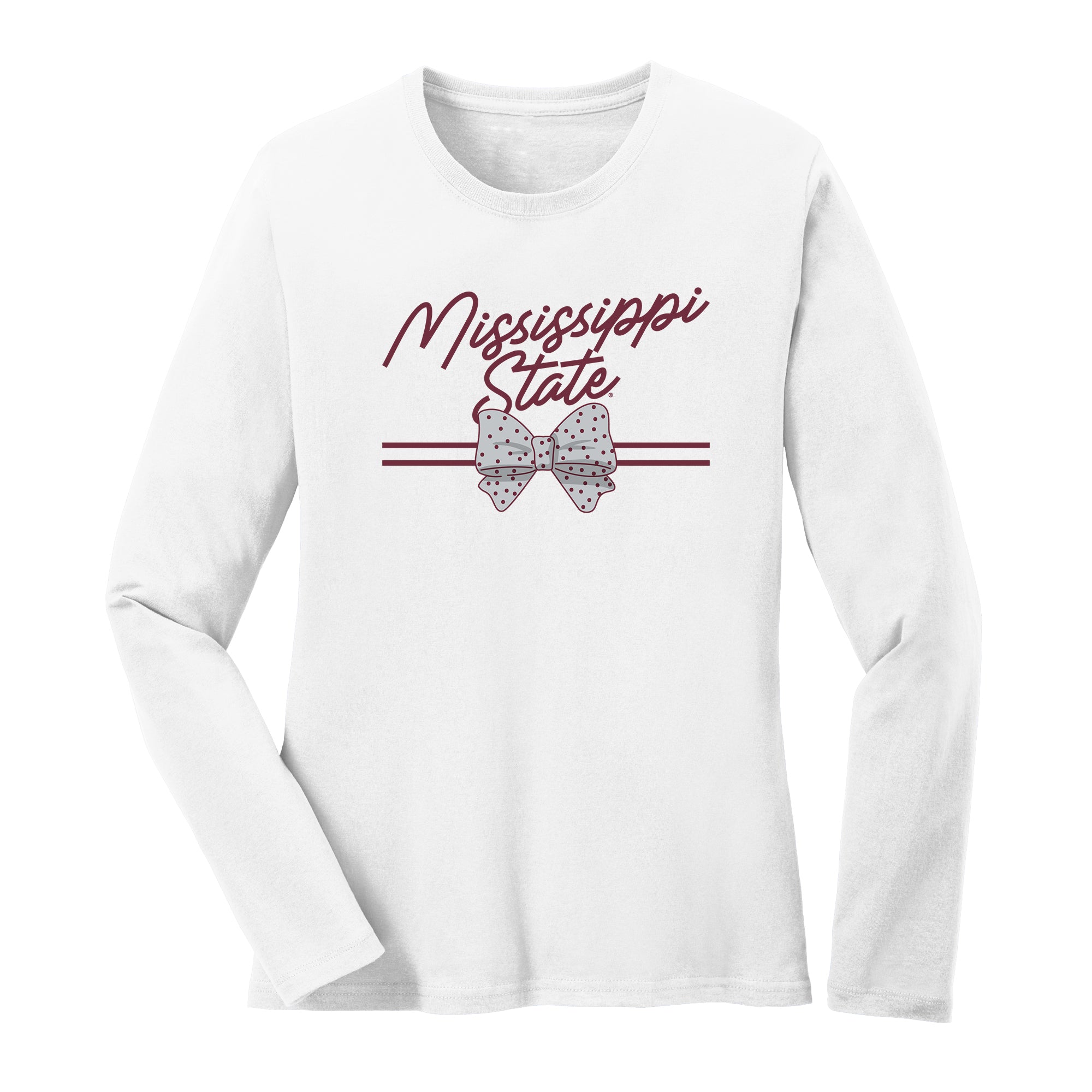 Mississippi State Bow Script Womens Long Sleeve - White