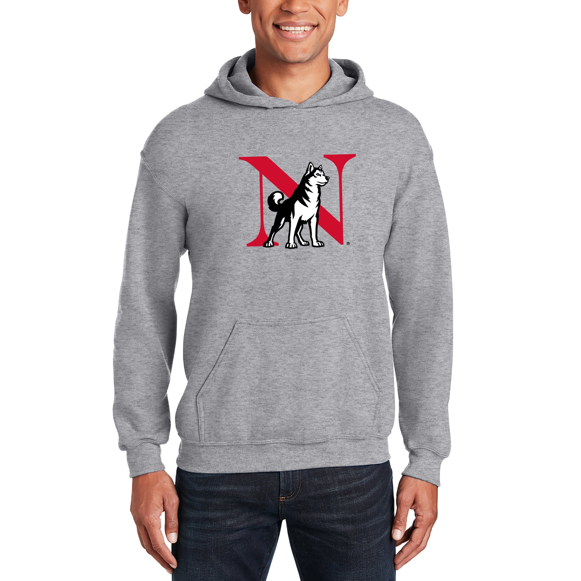 • Whether you are tailgating at a Northeastern football game, or in the stands cheering on the Huskies Basketball team, show off your Northeastern Pride with this great hooded sweatshirt.