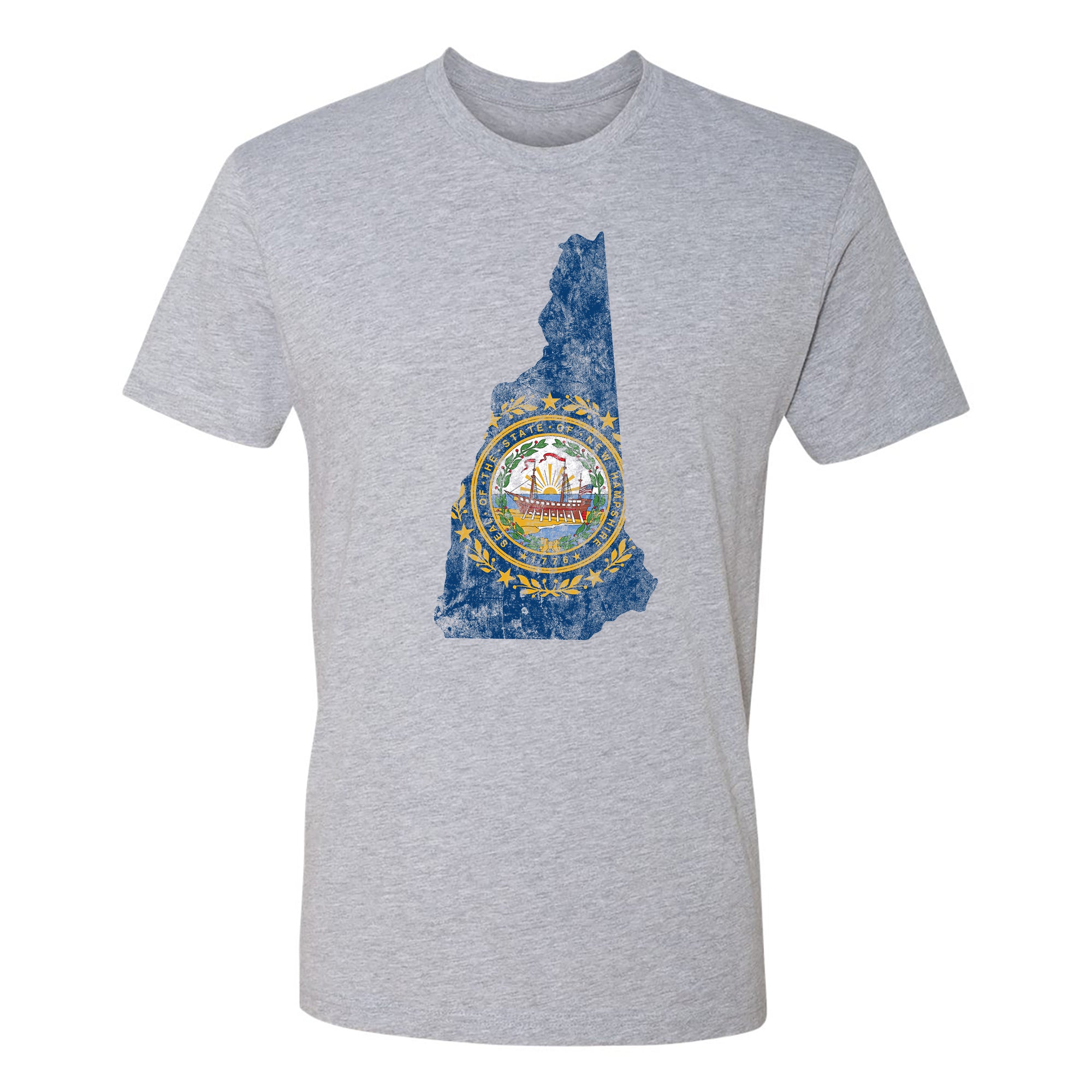 New Hampshire Distressed State Flag Outline NLA T-Shirt - Heather Grey