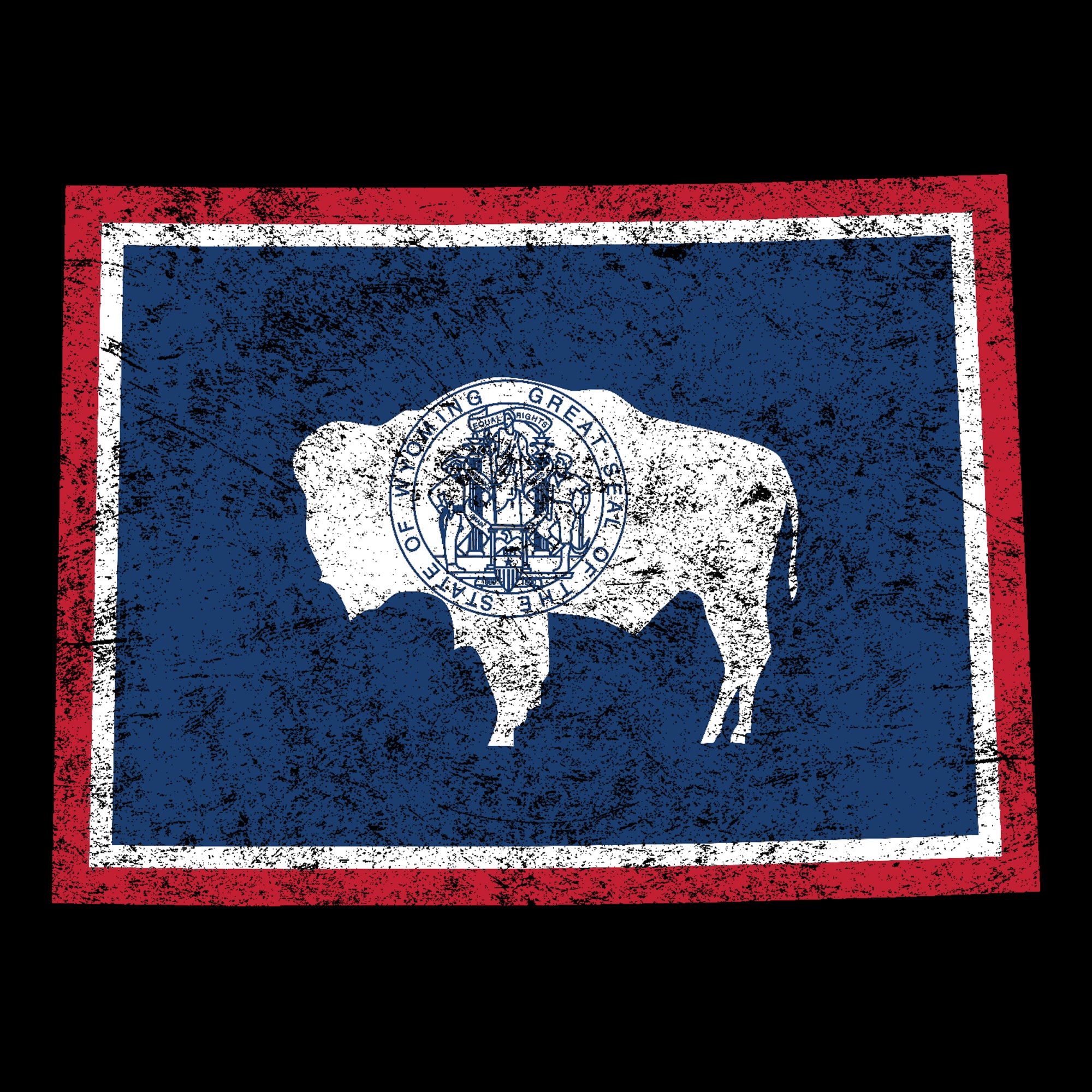 Wyoming Distressed State Flag Outline NLA T-Shirt - Black