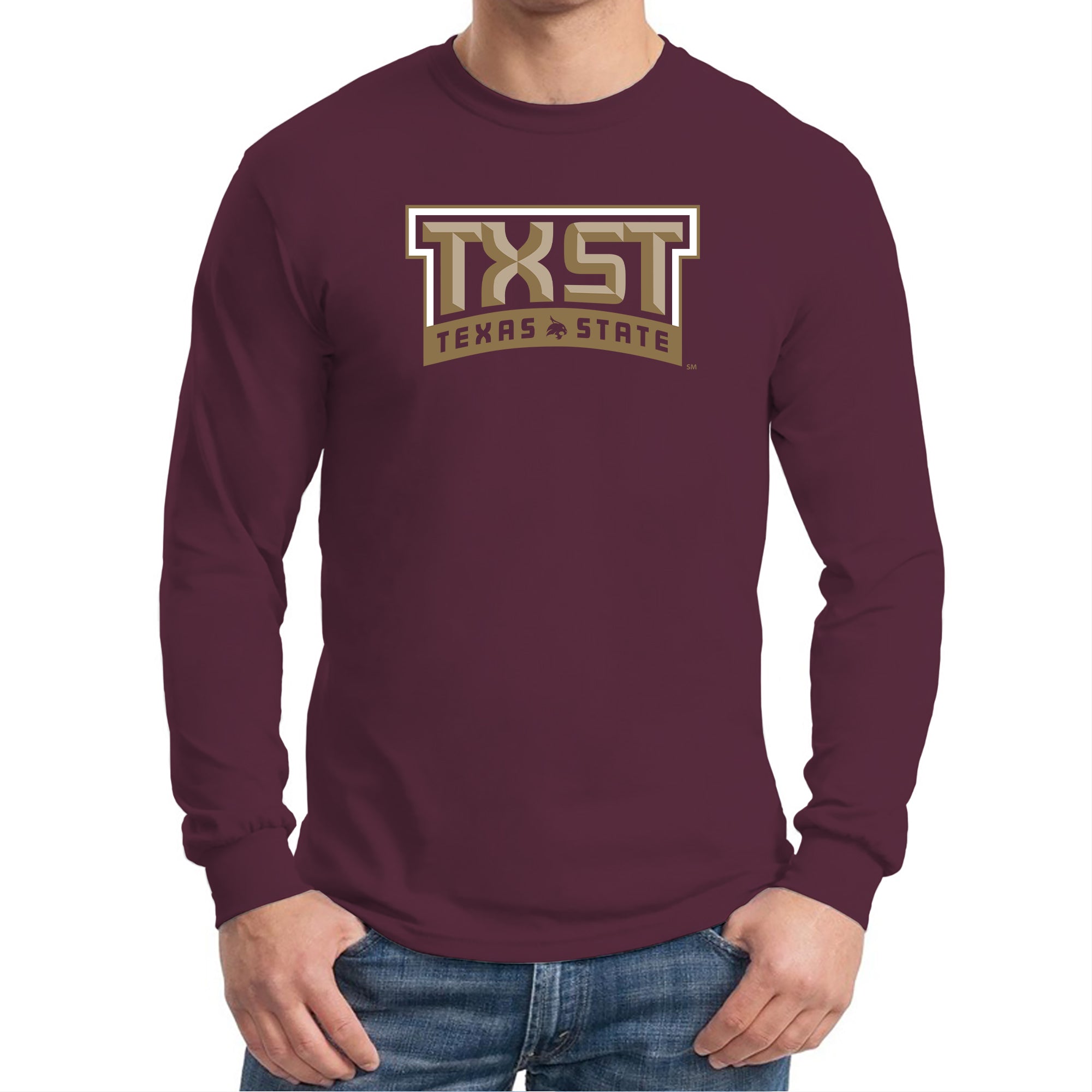 Texas State Bobcats Arch Logo Long Sleeve T-Shirt - Maroon