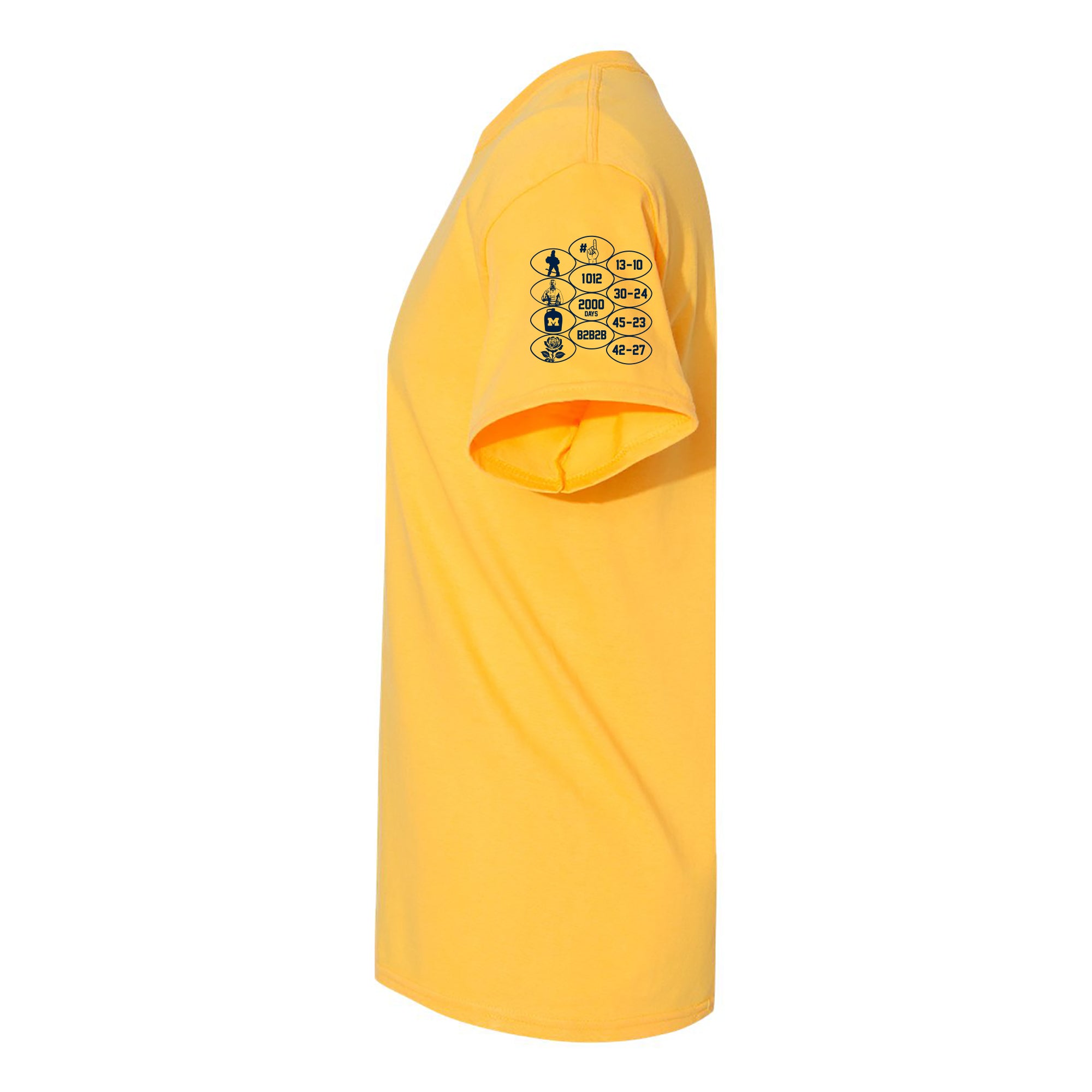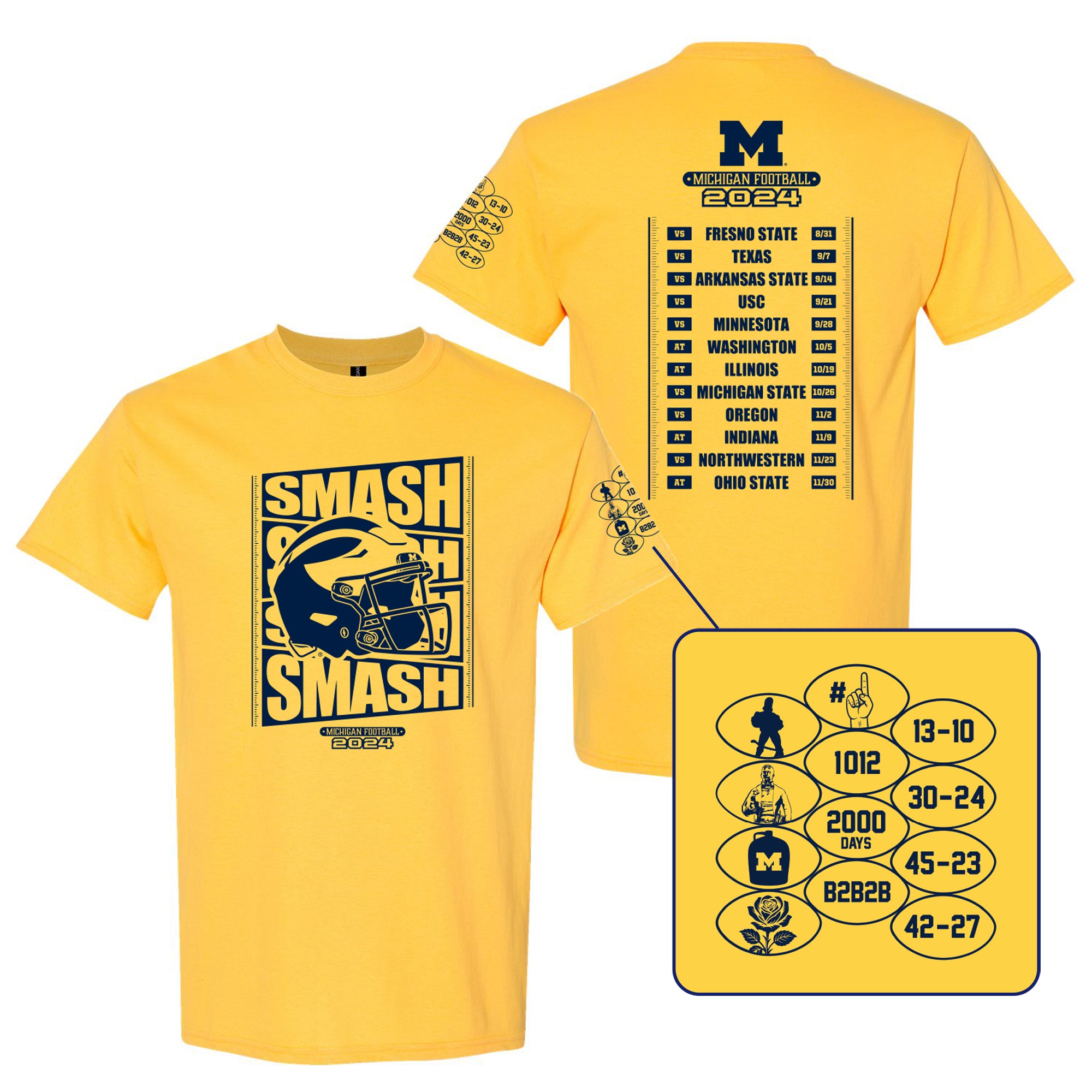- If you missed out on this season's tee, this is the perfect chance to complete your collection! Relive the thrill of Michigan football's 2024 season with this Throwback Tee! Featuring a new sleeve print to commemorate the national championship and beating Ohio State 4 years in a row! Perfect for game day or everyday wear. Go Blue!